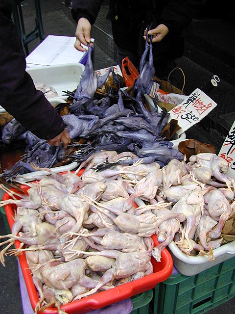 speaking of eating, the chinese like to eat. an uncle of mine observed that when other people visit a foreign country, they're out sightseeing. when a chinese visits a foreign country, he's out looking to eat. the stomach of the chinese is both good and bad. good because chinese cuisine is perhaps one of the most varied and flavorful in the world. bad because occasionally the chinese stomach gets him in trouble, especially when he eats things that he shouldn't be eating (don't say dog you racist, don't say dog!). my trip through the new york city chinatown was a real kaleidoscope of what the chinese eat. here presented to you from least offensive to most offensive is a sampling of what i've discovered: