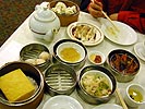 dim sum's pretty much the same where ever you go, which meant that i wouldn't have to go a weekend without catching up on my fill of tripe and chicken feet. i ordered both items when their respective cart rolled by. the carts at the golden unicorn have photos and the names of the food in front of them. although both the tripe and chicken feet were very tender (which i always took as a sign of better preparation, because it takes more food care to make something tender versus not cooking it enough and leaving it hard), my favorite tripe/chicken feet combo is still china pearl in boston without a doubt (only that place i went to in the queens chinatown the last time i visited nyc might possibly be better). the golden unicorn also charges for the tea, 60¢ per person, something that i've never seen in any restaurants in boston chinatown, and i didn't think the tea that they offered was anything worthy of a 60¢ surcharge.
