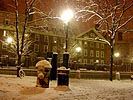at harvard square i waited for the last bus which was late to arrive. when it finally came (quarter past 1am) and everyone was already on board, the bus driver turned to us and said, "sorry folks, there's a football game in foxboro, we're waiting for the last train to arrive before we can leave. this could take a while." everyone on the bus had that "i got the shaft" look. i got off the bus and went to make a phone call to my father. he was still up chatting with some friends staying over at the house, and he was able to swing out to harvard square to give me a ride. i left the station to wait outside, the snow falling heavily in the night. my umbrella was out but i was still coated in snow because of the swirling winds. 10 minutes later my father arrived and i finally got home close to 2am. thus concluded my 21 hours new york city adventure.