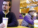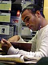 so we just sort of hung out in harvard square, went to urban outfitters, touch everything without buying, samaridan gave some change to a panhandler, i noticed every single girl who was wearing red pants, and we went to au bon pain to get something to drink and grab a seat to chat and people watch. at au bon pain we sat next to nick brown. nick who? if you said "oh, that harvard law student who was on survivor australia," then you'd be right. he was reading one of those things you open up and has words all inside of it.