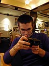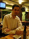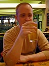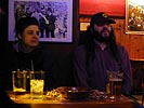 the place wasn't completely devoid of food though: the bartender (some ponytailed young man who seemed to have a small following of girl groupies around the bar) poured some peanuts into a bowl and gave them to us. with nothing else to do but drink, we dug into the peanuts, leaving a pile of shells on the table that we later crumbled completely into a fine powder. klea showed me the peanut santa, first time i've ever been exposed to such a thing. klea also resisted the urge to smoke, and the fact that she was with a bunch of nonsmokers might've saved her (at least for tonight) from taking one step closer to cancerville. we saw this guy who looked exactly like john miller, just aged 10 years. the resemblance was uncanny, and elias and i both tried to get a photo of this doppleganger, using jared as a decoy.