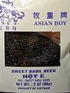 here's something off-topic, but my father bought this packet of sweet basil seed from chinatown and the packaging is pretty funny. the words "asian boy" appears on the top, with a drawing of a farmerboy playing the flute while riding an ox. down below are the vietnamese words "hot e." i'll say!