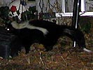 in the darkness i noticed something in the middle of the lawn which i figured to be a windblown plastic flower pot. when it started moving i took a closer look and discovered that it was a skunk! i followed it from a distance, arming my camera to get some snapshots. skunks are funny animals. they sort of ramble when they walk, they're never in a hurry. it walked the perimeter of the lawn then disappeared into the neighbor's backyard.