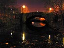 we walked to the new virgin megastore (formerly tower records) at the intersection of mass ave and newbury street. along the way, we passed by the northern tip of the fens, where there was a very nice view of a bridge with the reflection of the water and a layer of debris (branches, trash items, etc.)