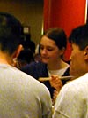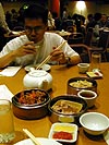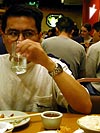 we ate a lot, between him and me, we had almost $30 worth of dim sum. usually when i go with laurie, it's only $20. all around us were people taking photos, and being the natural bastard that i am, i'd try to get myself into the background of their shots by any means possible. i hope a lot of them get a delightful surprise when they either go home and download their digital photos or get them developed. the large table behind manny, there was a big group of asians with one token white person, this girl who reminded me of a blonde version of office amanda. yeah, doesn't take much to distract me.