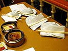 the head waiter really wanted us to leave for some reason. maybe we had outstayed our welcome, most likely there were a lot of people waiting downstairs for seats. but instead of letting us know, he'd use these subtle tactics to try to drive us away. we were totally on to him and that's why we stayed even longer. first, he came over and asked if we were done, and started adding up our check before we were even able to consent. then, he had one of the staff waiters come by and clear any empty dishes off of our table. later, he put out a set of clean dishware and napkins beside us, in case we didn't get the hint.