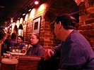 at harvard i went to grendel's den. as soon as i stepped inside, julie appeared besides me, arriving at almost exactly the same time. we were lucky enough to find two vacated seats by the bar, where julie proceeded to dazzle me with cute stories about her new kitty cat. later her friend lyle joined us. i sat next to this seasoned boozer, some old man no less than 55 years old, who was actually there scoping out the babes. i watched him go across the bar to talk with this young lady who surprisingly didn't tell him to f*ck off but instead indulged his drunken slobbering, maybe out of pity, i hope it wasn't out of genuine interest. shooting blanks, he came back to the seat besides me, but not without brushing up behind julie. during the whole time we sat at the bar, i could feel him watching her, but he didn't have the courage to say anything because she was talking to three guys (joel showed up as well). later throughout the course of the evening we all moved to tables. for dinner i had the calamari linguini which i only paid $3 for (normally it'd be $8) because i happened to order right before happy hours ended. aside from the linguini, i had a total of 2 cokes.