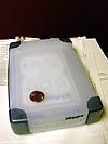 the equipment that we ordered for the project finally arrived, a new burner and a new external hard drive. after the delivery cd's where burned and out the door, i spent some time setting everything up, taking deep whiffs of that new computer equipment aroma. the maxtor firewire hard drive has no power switch, so as soon as i connected the power and firewire cable, my mac froze for a second before i saw the maxtor drive boot up automatically on the desktop. i then hooked up the 24x burner. this would mean i'd finally be able to take home my own 8x burner after i brought it into the office over a month ago to burn cd's because there was a lack of available burners. i couldn't resist, i had to test burn something, so i grabbed my call & response cd and tried to do a cd-to-cd burn. i was kind of confused, it only allowed me to do a maximum of 16x. i checked the box a few times to make sure we really did get a 24x burner. maybe only 16x for a cd-to-cd. anyway, i hit burn, it filled the ram buffer, and no more than a few seconds of burning did the burner pop up a buffer underrun error. no! that was my cue to go home.