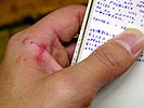 eliza had a blister on her heel (from her run yesterday, all my fault) and because she couldn't find a bandaid in the office, we had to make a quick stop to the kendall convenience store to buy something for her ailing foot. we left with alex, would told us about his weekend 16 miles run. it'll be interesting to see if there's any hobbling in the office come monday morning. anyway, eliza and i ran to the store and since they didn't have any sample packs of bandaids (she should've just winona'ed a box underneath her shirt!), so opted for a role for bandage tape, paying with her two dollar and telling the cashier man to keep the change (money money!). i watched as she bandaged up her heel and then put some bandage on the inside of her one misbehaving sneaker.