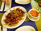 during lunch originally i was thinking about a quiet meal at empire chinese restaurant, but instead i went with amanda and carrie to buy cakes and ice cream for the 6th year company anniversary party we'd be having later today. i went looking for the star market prepared meals, but apparently at this particular star market (the one close to cambridge street) they don't carry them, so i had no choice but to settle for some sort of canned soup, picking the chef boyardee beef ravioli in tomato sauce.