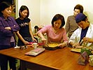 after eating some delivered pizza, i went with my parents to my godmother's apartment where she was have a party for some "little friends," which is a euphemism for her son jack and his cohorts. i didn't want to go, and i even called to cancel, but my godmother kept on insisting so i felt obligated to make at least a brief showing. visiting them was lillian guo, the older sister of their next door neighbor friend back in taipei. i had met her when she was a glasses wearing nerd studying english in middle school back in the summer of 1993-1994 when i lived at my godparents' house while studying chinese. i translated parts of huckleberry finn for her (her required reading at the time), a living breathing english language decoder. now, 8 years later, it's kind of weird seeing her again. "do you remember me?" she asked, "do you notice anything different?" yes. no longer gawky, she traded her glasses for contacts, and even got eyelid surgery to give her more western eyefolds, along with brown streaks in her hair. fresh from hawaii, she was dressed in too little clothes for this time of the year. in hawaii she's on a 2 years english studies program, and she came to boston to visit my godmother and her two sons, her former neighbors. jack also had a bunch of friends over from umass lowell, all asian, all from taiwan, except for kumiko (she goes to harvard), who's a regular visitor here and whom i've seen on a few other occasions at my godmother's place. tonight was all about feeling like a stranger in a strange land. on the one hand i felt old being reunited with this "little girl" whom i met 8 years ago, and on the other hand being with a large group of asians always makes me feel weird for some reason. i spent the first half of the night at the "adult" table talking with my parents, my godmother, and a friend of hers. later when i got bored i made the transition to the younger kids, conversing in either english or chinese depending on which ever language they're more proficient in. when i talked with lillian, she was amazed that i had lived here for the past 22 years (i don't think she's even 22 years old yet) and that i'm still able to speak chinese. at the end of the night, because it was jack's birthday, we had a cake and some presents were opened. the "little friends" all got dressed and went out to party some more. soon afterwards my parents and i left as well.