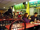 it'd be cool to know enough about sewing or knitting to make your own clothes. it's so old school, and all that old school skills are becoming increasing cool. but i'm so lazy, i'm just as happy buying something instead of making it. still, i wanted to buy some fabrics, not because i want to make anything out of them per se, but just because they were so cool looking. the 3rd store we went to, it was kind of quiet, and the reason was probably because they didn't have a very big selection. they had a lot of children prints though, and laurie was checking out the barbie print fabric. laurie ended up not finding anything see liked and would try another store in arlington. i had my eyes on some polyester/cotton stuffing for $2/bag, for those cylindrical back pillowcases i bought in istanbul, but i didn't buy them, figured i'd get them another time.