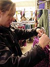 after dim sum we visited 3 fabric stores around the chinatown area. laurie wanted to get something purple and cottony to make couch pillows out of. the first store, besides the parking garage, carried mostly chinese materials, which meant a lot of transparent or silky fabrics.