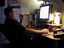 actually, sam and scott were upstairs as well (working on a different project), and they stayed pretty late but left around 8pm. i didn't realize it but james had been hiding in his office all day and only came out to see who was still left. we chatted briefly about cellphones (he's thinking about getting one), he fixed one of my action figures and gave it a slight repaint job, and he bought me a bottle of canada dry from the soda machine. at 10pm i called it quits and got a ride from my father who was just getting out of work himself.