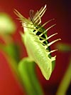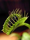 the first time you trigger the plant, it closes its jaws but not all the way, just enough to cage whatever's inside. how it determines whether it's an insect or not are through little hairs inside the jaws. the more they get touched, the tighter the jaw will grip, until eventually it's completely sealed the insect inside. that's when the real fun begins as the natural order of pedator versus prey gets all topsy turvy when plant eats insect! so after learning this little fact, i look a paperclip, poked around inside the jaws, and got the trap to close back up again. i poked around a little bit more and i could see the jaws starting to tighten and seal in the dead fly. okay, now we're cooking!