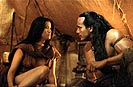 okay, enough about the rock, what about the real star of the movie, kelly hu, as the sorceress cassandra? girlfriend is looking fine in this movie, wearing the requisite revealing fantasy outfit made out of chainmail material or that thrown together robe that's loosely tied so that everytime she moves people are breathlessly captivated as to how she can keep herself from falling out of her outfit (because it's a pg-13 movie, the audience never really sees anything, but it's still titillating nevertheless). oh, and who can forget the bathing scene where she's wearing nothing more than strategically placed hair? my only wish is that maybe her role could've been more kickass. in this age of dark angels and buffys and rachel weisz (mummy returns) and jennifer garner (alias), i just would've liked to see kelly dispense some serious ass kicking to some unfortunate baddies. true, her role in the film is that of captive bride-to-be of the warlord memnon, and it'd change the storyline if she was all tough and skillful in fighting (because then she could escape). oh, and kelly hu looks nothing like the woman portrayed in those movie posters!