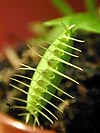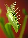 my venus flytrap with the fly inside remained closed, which is a good sign that the plant is actually starting to eat the fly now. i freaked michael out when i let him touch one of the remaining one traps with a paperclip. when the jaws suddenly closed up, he flinched. i noticed that the jaws didn't close all the way, which is what it does on the initial close, when the hairs inside don't get triggered anymore. later, after work, i let elias trigger a trap too.