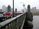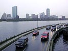 did you go running today? no, it was rainy, it was cold. besides, eliza didn't want to go, so i quickly lost my desire to go as well. i did briefly think about going solo, but i didn't want to get sick with another full day of work tomorrow. nevertheless, i went out for about an hour after work to just walk around in the freezing rain, to get away from the office a little bit. i ended up walking to the midway point of the longfellow bridge, took some photos with the sky thundering and my little inverted umbrella, behind me bumper to bumper traffic. i came back totally soaked.