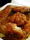 everybody was kind of tired, joel, elias and i lounged around in the bare living room while brendan and dan slowly loaded the remaining items into the cars. we went back to allston, moved everything, and walked a few blocks down to a wings restaurant where we all got drinks and dan and i ordered wings. it was close to midnight and i haven't eaten anything yet. i ordered a small serving of spicy dijon mustard wings. hmmm hmmm good!