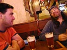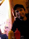 i rediscovered my good mood after work, when i left with elias to meet up with a bunch of mostly former screen house workers at shay's in harvard square. david and julie were already there waiting. joel was the next to arrive, followed by jared. kimberly, back in boston for the week (to visit her bf and her cat) from new york city joined us too, then chris and roy, roy having just came back from a two week vacation down in florida. klea was the last person to arrive (fashionably late as always). the most animated topic of conversation revolved around that new nbc reality show fear factor. julie couldn't get enough of people eating pig rectums, and neither could anybody else who's seen the show. jared cut his hair but didn't want to show anybody his new short haircut. kimberly also told us that with our fleet banking card, we can get free admissions to all sorts of museums during the month of may! sweet!