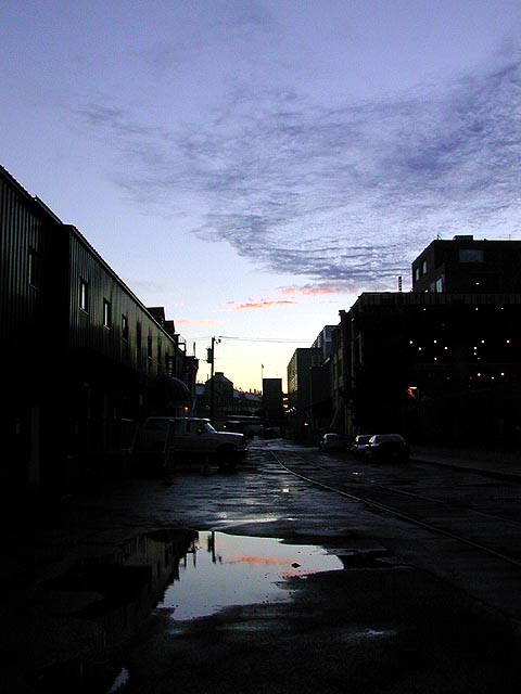 but once i accepted the fact that i wouldn't be able to get home in time to see the season finale of gilmore girls, i didn't feel anymore, just went through the familiar work motions until the delivery was done. cd burning is still an art form, not yet science. the stack of bad cd's sitting in my trash can is a testament to that fact. when i finally left the office at 8pm, i was greeted by a pleasant sunset. i walked to the t happy, even though i worked an 11 hour shift today with no food.