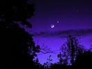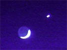 stepping off the bus in belmont, i saw a beautiful star and crescent (moon) formation in the twilight sky. (that's no star! that's venus!)