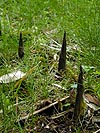looks like i already know what i'm going to be doing this weekend: uprooting our bamboos and putting down an underground barrier around the roots. they're getting way out of hand, everytime i go out into the backyard i see more spikes jutting out of the lawn. this is a full scale bamboo invasion! i think some of the shoots have been eaten by animals though, i've seen signs of gnawing. and once they've been broken, ants seem to really love the bamboos as well. but all the hungry squirrels and hungry ants won't solve the real problem, which is there are rhizomes running rampant underground, spreading bamboos now out to 10 feet away from the epicenter.