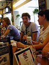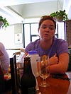 after work i went running with julie. i was late for our 6pm rendezvous, having gotten stuck in the office burning a last minute cd. when i ran to our meeting place, julie was already there waiting. we decided to take the 5 mile route around the science museum and across the mass ave bridge. in order to spice things up a bit, julie decided that we should go in the opposite direction. signs of summer were everywhere, people lounging by the docks, lying on the grass, topless men and spandex/lycra-wearing women running and rollerblading along the paths. for the final stretch, julie and i crossed memorial drive and out behind the marriott hotel, where we crashed rebecca's farewell party at the characters hotel bar by waving to her outside the window. julie went back to the screen house office while i returned to srm, where i took a quick shower (i really needed it, i was sweat soaked) and then went back to the characters to join up with the program, already in progress.