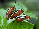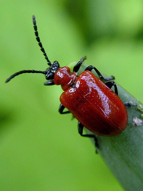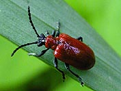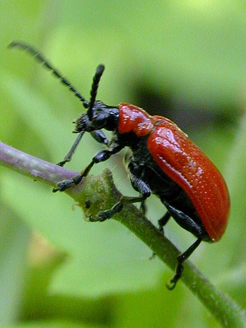 i saw a new beetle that i haven't seem before, a kind of leaf beetle, similar looking to the more common three-lined potato beetle that live in my backyard eating nightshade leaves, but completely red. when i first saw it i thought it might've been a mutated potato beetle, but there were enough differences to classify it as a completely different insect.