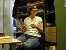 the solution was so obvious, kind of weird why we didn't think of it sooner! it was a cd burning factory downstairs. my project manager todd told me that we have never delivered that many cd's on a single day before. 54 cd's! and that's after realizing more than half of our original burns had bad media on it that needed fixing. thank god for 24x burners! i also think if those ladies weren't downstairs helping out, i would've been seriously stressed. as it turned out, i even left before they did, which is something i never thought would happen on a day where we had a major delivery.