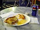 i picked the seat right above the entrance so i could watch people coming and going. the slices were big and greasy, i saved the crust for the garage can. later i went to newbury comics to browse around, didn't see anything worth buying (not in a big money spending mood these days, go figure), left the store without having my digital camera setting off their shoplifter alarm. i then went downstairs and waited for dan to show up in front of ben & jerry's ice cream. when he got there we left for the theatre, where dan paid for my insomnia ticket as payback for helping him move to his new apartment the start of last month.