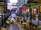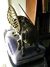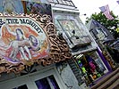 there was one place that catered in asian items, and i was mesmerized by the expensive collection of insects. walking by an antique place (scott dinsmore), my eyes quickly saw a cast iron insect sculpture sitting on the floor. i backtracked to take a closer look, and saw that it was actually a votive candle holder shaped like a bumblebee (i thought it was a cicada at first). turning the price tag around i was astonished to discover that it only cost $20! i must buy! so i did, had the clerk package it for me in bubblewrap, and i spent the rest of my provincetown stay much like many of the other men, holding a fashionable gift bag in my hand, much to the amusement of julie. julie also told me it was refreshing to be in a place with so many gay men, because she doesn't feel the leering she'd usually get from straight guys. here, most of the men could care less about her gender! i told julie i was going to get her in trouble by telling one of the lesbians that she (julie) was actually very interested in sapphic love but just a little shy, needed some aggressive affection in order to open up. the big event happening this weekend was some sort of film festival featuring john waters and elvira, mistress of the dark. we saw long lines of people snaking out of the theatre. a couple we bumped into at an opened ceiling mall asked us, "are you going to the festival?" to which we both replied, "no." but in hindsight, julie and i should've said, "by festival, do you mean the orgy? then yes."
