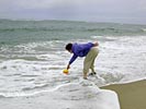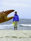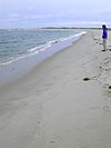 our second destination took us to chatham, to the chatham light beach. the beach sits on the southern tip of a large sandbar known as the cape cod national seashore. a sign posted at the entrance alerts beachgoers not to disturb any marine mammals that might be using the beach (we didn't see any). it was a cold and overcasted day, not much for sunbathing, not much for swimming, so julie and i just walked down a length of shoreline, tossing a wiffle ball with the jai alai paddles she had purchased from cvs. midway through i took off my socks and shoes and rolled up my jeans so i could get ankle deep in the atlantic ocean. cold! but at least i've fullfilled a dream i've had since wrapping up my project at work, that i would go to the beach, rain or shine. walking back, i found somebody's lost silver necklace in the sand, a little cape cod souvenir.