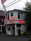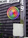 next, we drove to provincetown, the very tip of cape cod. we went through truro, the town that's slowing sinking into the ocean. originally the idea was to park down by a bike trail and ride 5 miles into town, but with the cold weather and the rain, we opted to go directly to provincetown instead. for those who don't know, provincetown has a large gay community. before getting out of the car, hetero-julie was fussing around with her short hair to make herself look pretty for the lesbians. we parked at one end of commercial street, giving us a good tour of the place as we walked to the other end. it wasn't raining by then (or a slight drizzle at most), but still cold, so julie and i both got small chai lattes to give us some warmth. like i said before, it's been over a decade and a half since i've been to the cape, and likewise to provincetown, therefore i had very little recollection of the place, so everything seemed new to me. provincetown is a very happening place, and commercial street is full of restaurants, bars, art galleries, antique shops, clothing stores, movie theatres, and a myriad of other boutiques. a lot of places had signs that read, "no food, no drinks, no dogs, no strollers." another interesting thing was the number of well tended flower gardens throughout the town. for me, i was especially interested in the stores that sold anything you could decorate a home with.