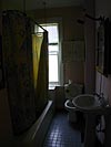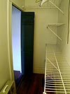 other rooms... while the rest of the condo has hardwood floors, both bedrooms are carpeted. the previous tenants owned cats, so the carpets sort of smell like animals. my father and i spent some time pulling up the carpet in the master bedroom. linoleum lies below the carpet, new hardwood floors will have to be done for the bedrooms. there isn't much to see about the bedrooms, they're small at the expense of a bigger kitchen and living room. likewise the bathroom. i've seen some spacious bathrooms in my house searches - bathrooms with marble tubs and separate showers, bathrooms with multiple jacuzzi jet heads - and this isn't one of them. at least there's a window in the bathroom (i don't know why, i've always felt that was important). it's got a weird smell too, like some sort of unidentifiable soup or shampoo. hopefully a scented candle can drive away the smell. there's also a walk-in closet opposite the bathroom.