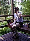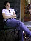 we got a chance to say good bye to both paula and christine, who weren't in the office on the day they announced layoffs. with our moving done, we drove to porter square and got burritos from anna's taqueria. i invited amanda and carrie back to my new house, to show them the place, and to eat our food and chat. carrie and amanda marks the 3rd and 4th persons to have seen my place (besides members of my family). they loved the light fixture in the living room and the pink kitchen walls. we ate outside on the deck, the numerous trees providing us with abundant shade on this warm and sunny day.