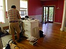 living room, walk-in closet, bathroom, two bedrooms, kitchen, deck, backyard, and even the basement (i usually don't show people the basement, there's nothing to see). eliza and i are in the same financial boat because we both own condos in cambridge, we both have a mortgage, and we're both unemployed. when we came back into the house i revealed to her the grand finale, which was the washer/dryer unit hidden behind a collapsible door in the kitchen wall. eliza remarked that that was the best thing in the whole house. i can't wait to have laundry parties!