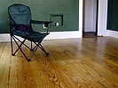 also since i don't have a real couch yet, i used a collapsible camping chair as a simulated couch, so i could figure out the best place to put the television in the living room. rules of feng shui need not apply here, i'm going to have diagonally positioned furnitures, that's what i'm deciding.