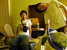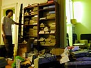 it took 2 trips in 2 cars to move the rest of the stuff he had in his old apartment. the new tenants were actually already there ahead of schedule, the lease not yet expiring until tomorrow. they waited impatiently in the basement (they knew the people who lived in the basement apartment) for alex to move out so they could move in. alex had also cut the electricity to the apartment when he moved to his new place, so during our second move we had to work in the dark with a flashlight and some candles.