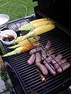 back in belmont, i toured the backyard a little bit to see what new flowers are out. the day lilies are blooming, and in another week the bellflowers will be out as well. after the bellflowers, i can expect the mint, the bee balm, and chinese chives to flower soon afterwards. my mother and i decided to have a heat wave barbecue, because what better way to beat the heat on a hot summer day than by standing in front of an open gas grill and cooking up some italian sausages and barbecue corn on the cob?