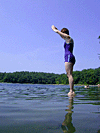 since i figured i wouldn't be going too deep into the water, i waded around the pond with my digital camera, taking photos, which is what i like to do. julie was quite a sport about it, and even engaged in some very photoworthy antics, like diving off of a partially submerged rock.