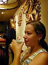 laurie and i got together for dim sum this morning. i met her at central square, and after getting her fix of iced coffee (i settled for a small dunkin' donuts orange-mango coolatta), we headed into the city via mbta. laurie, a slight germphobe, tried to avoid touching anything on the train.