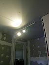 they did some minor sanding in the living room, but most of the work was done in the master bedroom, replacing one of the walls with fresh sheetrocks and covering up the old ceiling. instead of stripping the previous ceiling, for the master bedroom they nailed up some rows of 2x4's and just put a new sheetrock ceiling on top of that. this means i actually lost 2" in the master bedroom, the new height from floor to ceiling being 102". it's nothing noticeable though. i restocked the fridge with more beverage, a 24 pack of ginger ale. after 5pm the crew arrived. i love how zuka doesn't believe in wearing a shirt, walking around the house topless, his skin nearly black from years of natural suntanning.
