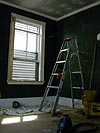 at 5pm zuka came for his supposed last night of work. turns out he had something going on, so he left one of his guys at the place to do some sanding and patching. while he did that, my father and i cleaned out the small bedroom in preparation for the floor guys arriving tomorrow. when the guy finished sanding the master bedroom, my father and i cleaned it up as well. the evening's tragedy came when the guy, not paying attention, crashed through the screen door on the porch. kicked a gaping hole in the screen, ripped the door from its hinges, and bent the lock. but the way i figure it, if he didn't do it, sooner or later somebody else would. screen doors are easily replaceable anyway. after a few hours zuka came back to retrieve his guy. zuka agreed that the heat gun is the only way to properly strip paint, especially if it's multilayered, and recommended a more industrial strength heat gun over the ones we were currently using. he also warned my father and i to get masks and showed up exactly which layer was the lead paint layer (maybe he recognized the faces of lead paint poisoning when he saw us). he demonstrated a few stripping techniques with the stripping tool (looks like a flat metal tear drop on a handle) and the heat gun. he's coming back tomorrow night to jack the ceiling of the basement. that might sound like something sinister, but let me assure you, it's very innocuous, because tony's cambridge dream house is sinking into the sea! i need to jack the basement in order to stabilize my kitchen floor from collapsing altogether.