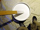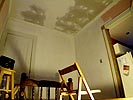 a fresh coat of primer to cover up the walls and ceiling. i've painted before, so i have some experience, but it's been a while since the last time i painted, so there was some initial trial and error to get my techniques down. my father and i opened up the 5 gallon bucket worth of primer we got from home depot,