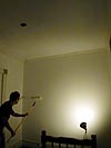i started to paint tonight. if i had a choice, i would probably wait another day or two, do some more preparation, patch some more cracks, make sure the walls were perfectly smooth and all the wood details like the doors and windows and baseboards were clean.