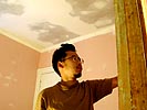 when my father came back, he helped me with some of the painting. he was on roller duty, i used the trimming brush to do the area above the ceiling trims. it took 3 hours and about a gallon worth of paint, but the guest bedroom has been primed, at least the walls (windows, baseboards, trims using a different kind of paint, a glossy primer). i left with my hands stained with paint, which i proudly show off as home renovation battle scars along with my heat gun burn.