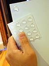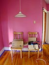 i moved all the chairs from the basement back upstairs, putting little felt pads on the feet so they wouldn't scuff the wooden floors. on some of the cabinet doors i added rubber dots to prevent them from slamming close. i put a new rubber stopper in the bathroom tub (candelit bubble baths here i come!). i opened all the windows and turned on the box fan to circulate the air. i finished covering the floor edges with a new roll of blue tape. i turned the gas back on and lit the water heater (actually my father lit it, i was too afraid of getting burned). i sanded, i vacuumed. in hindsight it didn't seem like a lot of work yet i was able to spend the whole day there. i had my ibook on the whole day, in the event of an important e-mail or instant message.