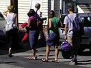 i met a friend of steve's - my upstairs neighbor - who came by his house to pick up his mail and send it to him in martha's vineyard. she was surprised that i haven't moved in yet and i showed her the work that's been done on the place. eliza arrived just as my pizza finished cooking. i showed her the newly renovated place - she hadn't seen it since her visit at the beginning of july. that was a long time ago, back when the house was in its original purchased state, pre-renovations. we climb onto my neighbor's 2nd story deck, sneaking a peek into his house, whistling with acorn caps, me finishing the rest of my pizza.