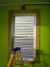 tape some more, repeat, over and over again. sometimes i rest the spool of tape on top of the window frame or door frame, other times i just keep it in my hand, pulling off enough tape so there'd be enough slack so i can move the ladder. there's also a hidden danger on the floor, a rectangular vent on the floor where the forced air heating comes up, but these vents are covered, so i have to make sure i don't accidently put the ladder on a hole and fall into my basement.